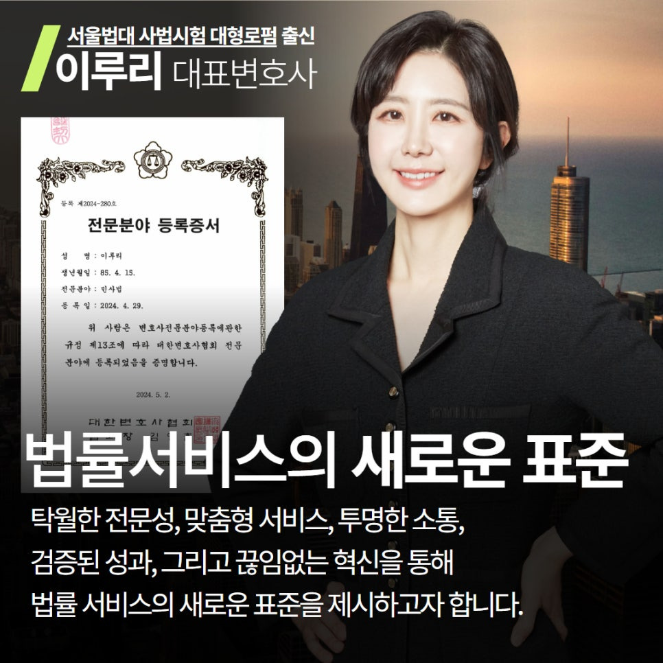이혼 소송은 단순한 관계 종료가 아니라 경제적 안정과 자녀 양육 등 앞으로의 삶에 큰 영향을 미칩니다. 그러므로 이혼을 통해 새로운 시작과 더 나은 삶을 위한 기회를 얻고자 한다면 “이혼전문 변호사 이루리”에게 상담을 요청하셔서 조력을 받으시길 바랍니다.